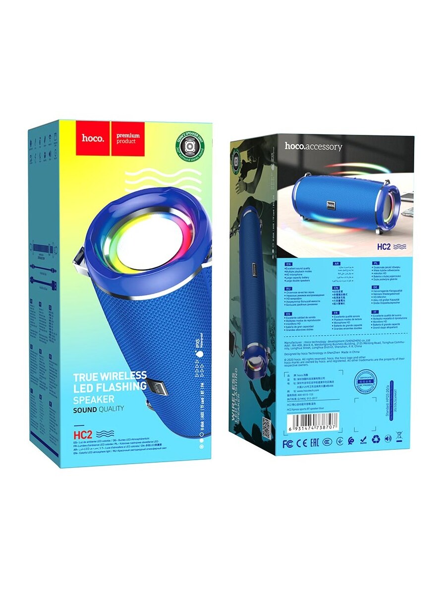 Портативная колонка Hoco HC2, 10 Вт, 2400 мАч, BT5.0, microSD, USB, AUX, FM-радио, синяя