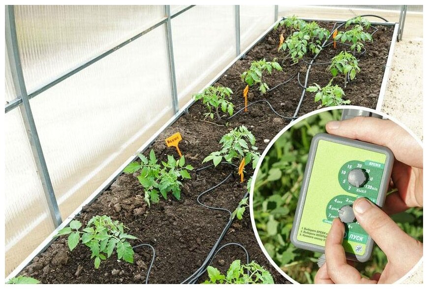 Набор капельного полива в теплице водомерка на 40 растений с автоматическим контроллером интересное: