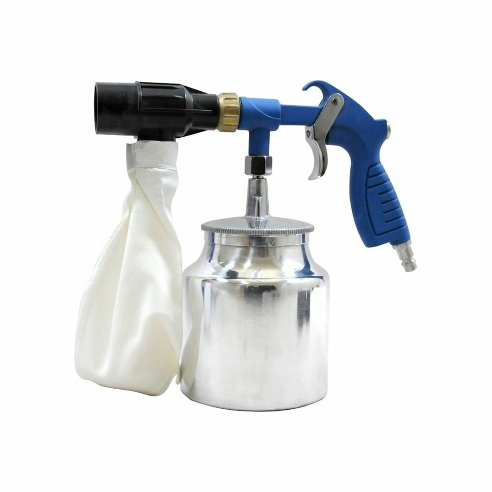 Пистолет пневматический пескоструйный, емкость бачка 1 л, сопло 3.2 мм, давление 6-8 Bar, расход воздуха 170 л/мин, со сменными насадками и песком