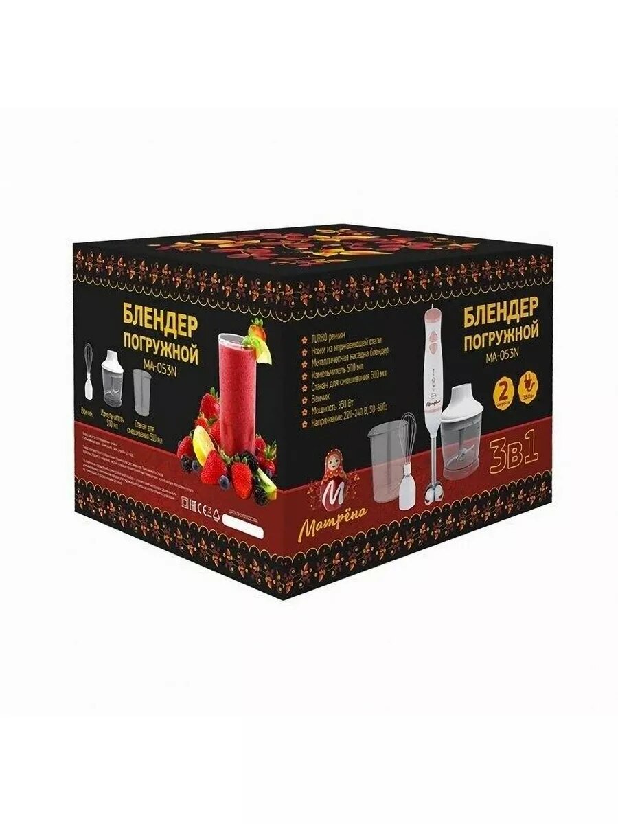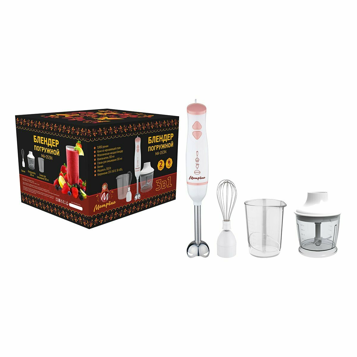 Купить Блендер погружной матрёна МА-053N, 350Вт, 2 скорости, измельчитель, стакан для смешивания, венчик