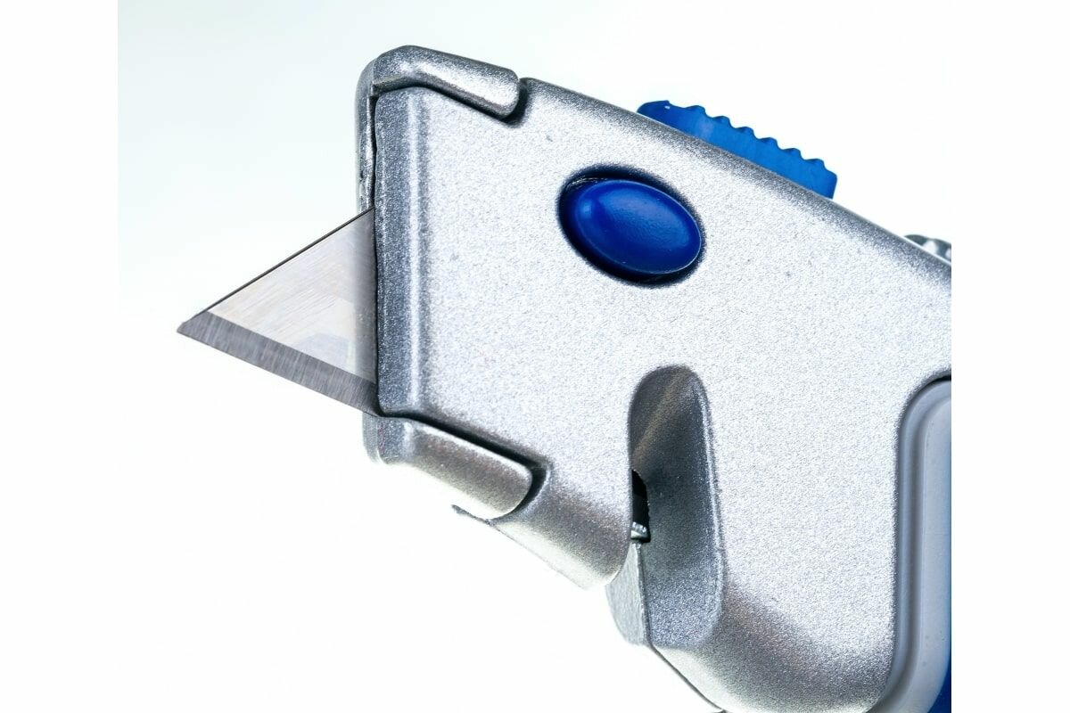 Технический нож, трапециевидные лезвия 19мм 6шт, металлический корпус, быстрая смена лезвия кобальт 242-076