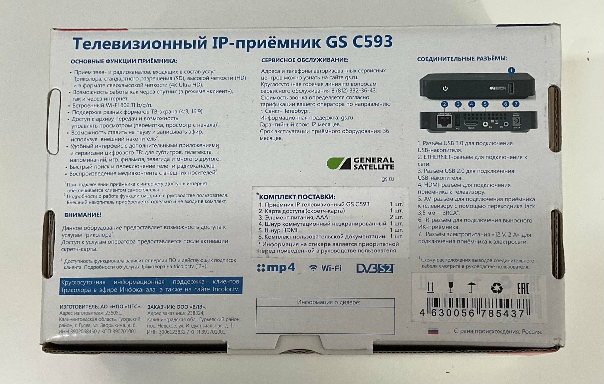 Медиаплеер Триколор GS C593 (+1 год подписки) 8Gb 046/91/00054451 .