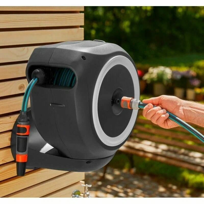 Настенный барабан, Катушка со шлангом настенная автоматическая Gardena RollUp L, 30 м
