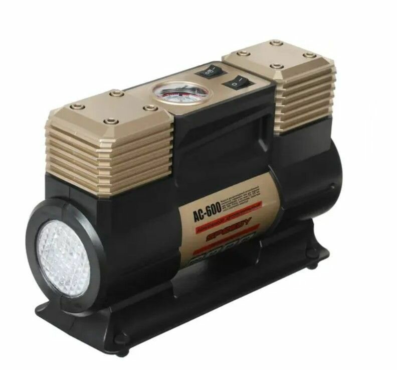 CityUp Компрессор автомобильный Tornado AC-600 SAVIOR двухцилиндровая насосная станция со светодиодным фонарем 300 Ватт, 10 атм, 60 л/мин, С сумкой