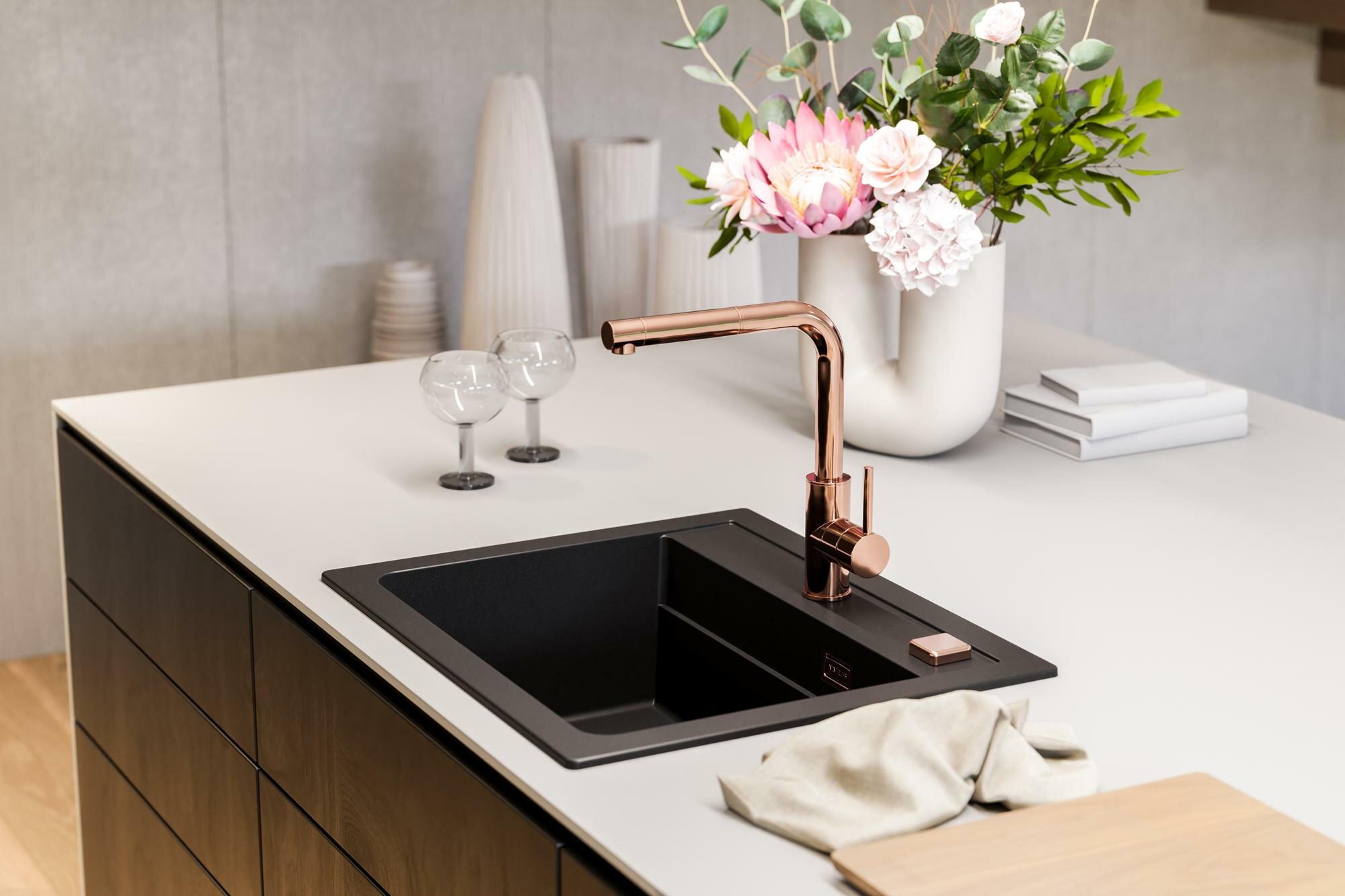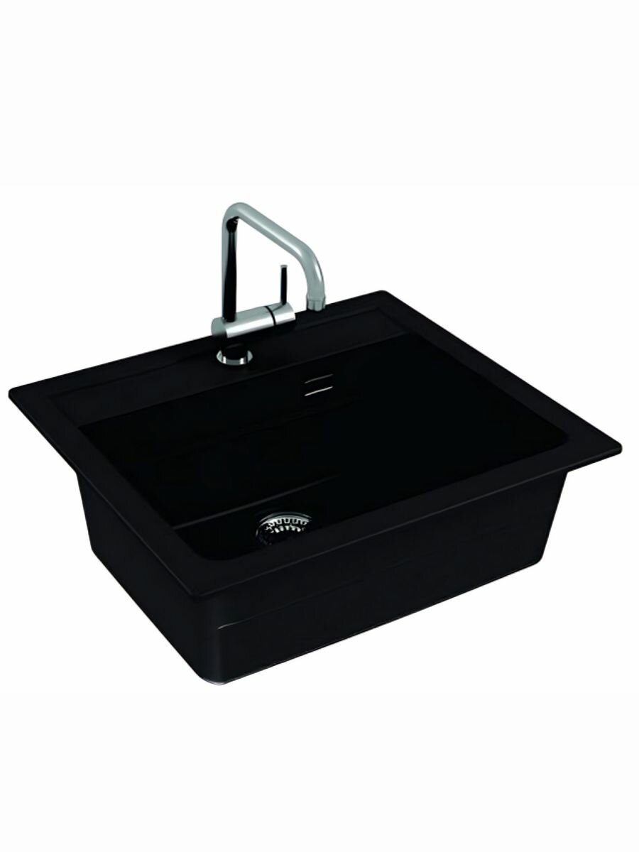 Раковина для кухни врезная каменная Alveus Granital Atrox 30 CARBON - G91 59 X 50 см / кухонная мойка накладная из искусственного камня, гранит, черный