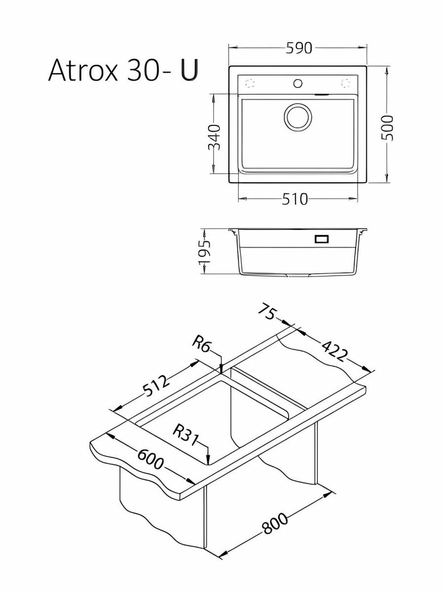 Мойки Alveus GRANITAL ATROX 30 CARBON - G91, мойка, гранит, черный