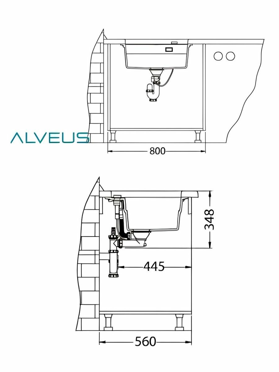 Мойка ALVEUS GRANITAL ATROX 30 CARBON - G91 590 X 500 1X в комплекте с сифоном 1132823,