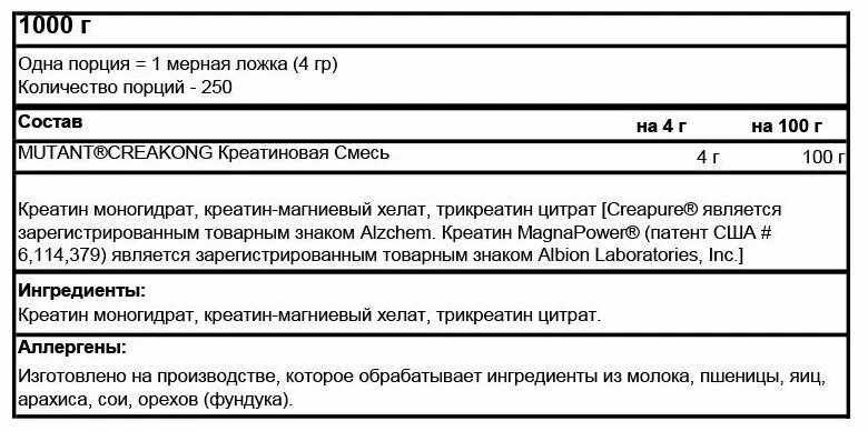 Креатиновый комплекс Mutant Creakong 1000 г интересное: