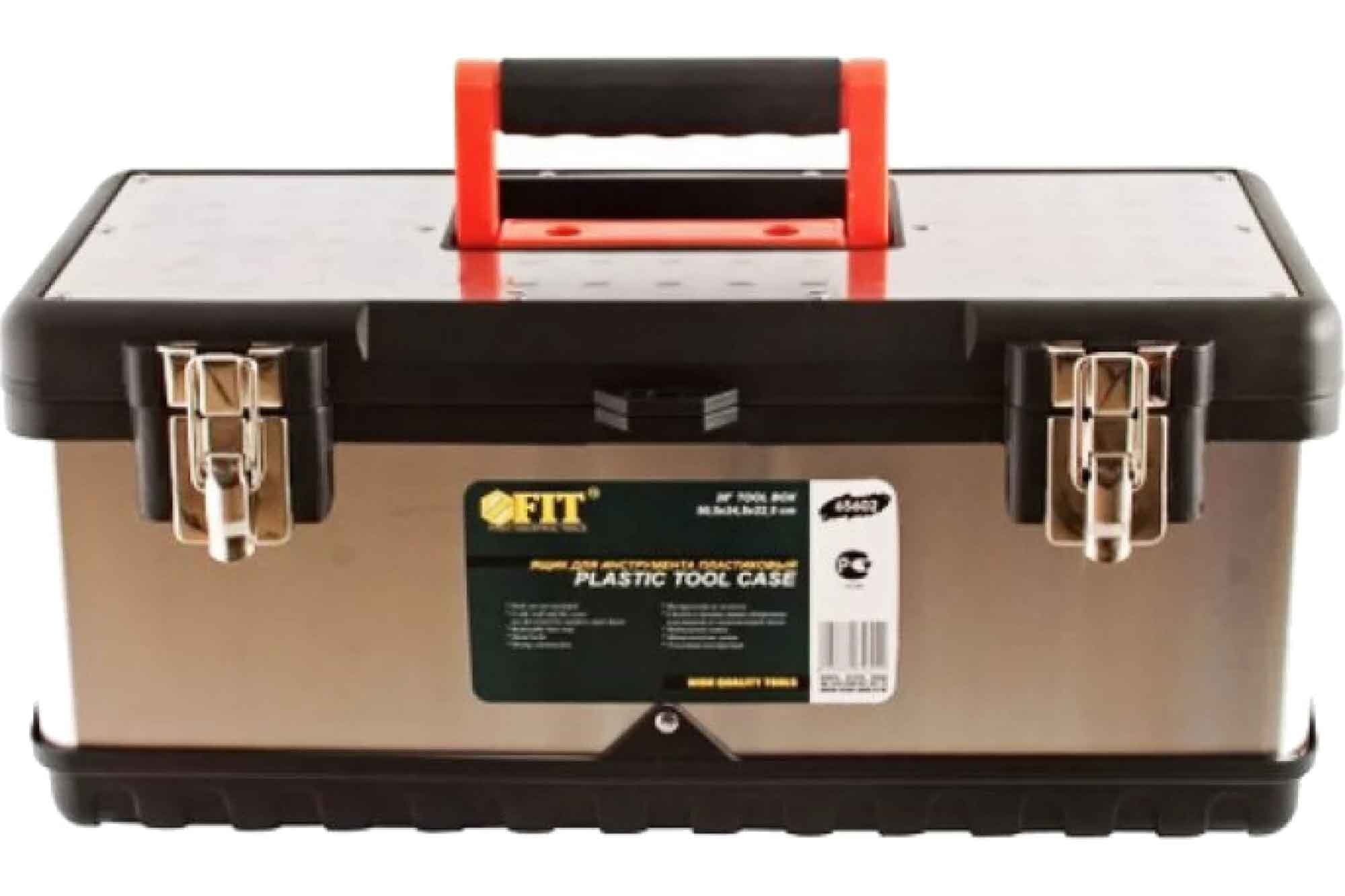 Ящик для инструментов пластиковый 59 х 28 х 22,5 см FIT металлические замки, облицовка из нержавеющей стали + съемный лоток