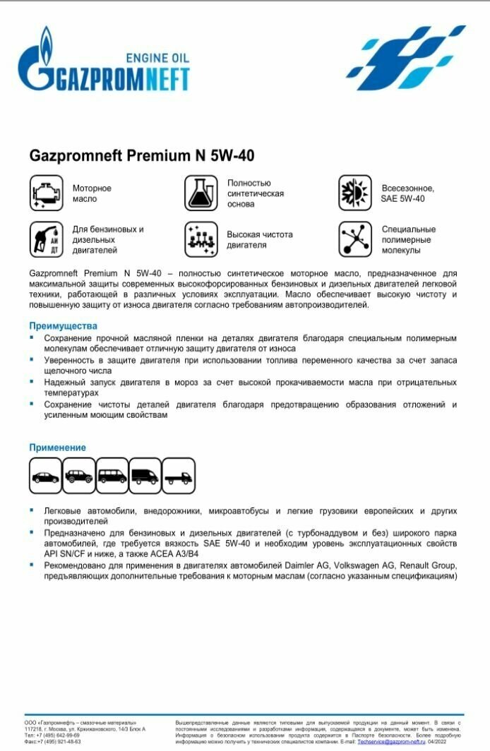 Gazpromneft Premium 5w40 Масло Моторное Синт. 4л. Gazpromneft Motor Oil