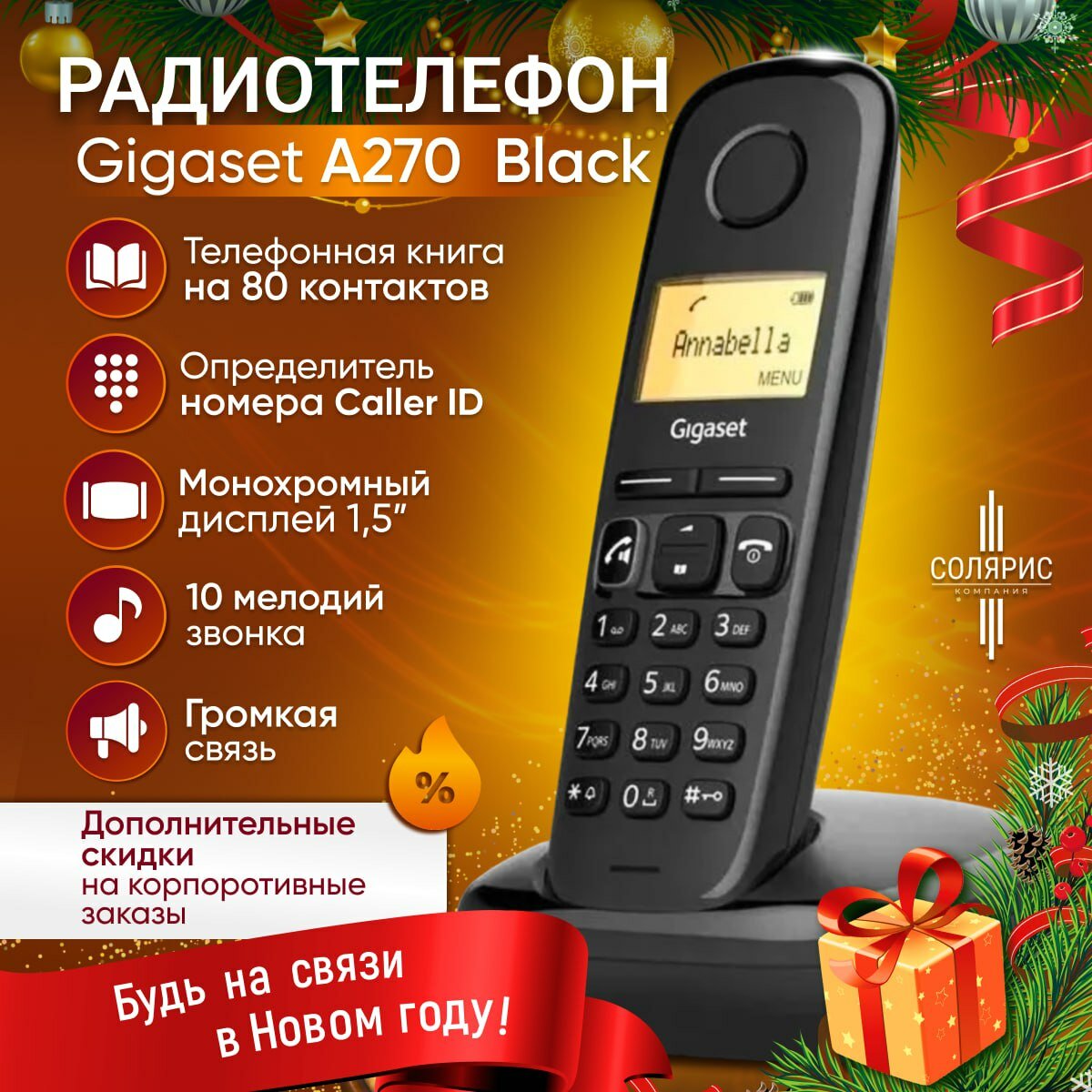 Радиотелефон DECT Gigaset A270, АОН, спикерфон, 80 контактов, подсветка кнопок, черный