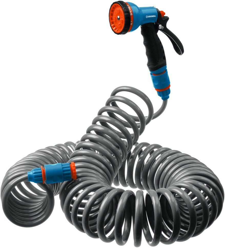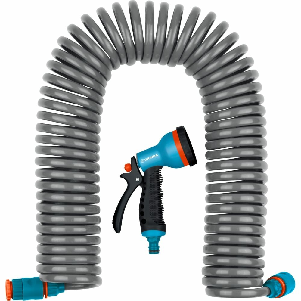 Набор поливочный GRINDA шланг спиральный 3/8x15м, пистолет-распылитель, адаптеры 428495