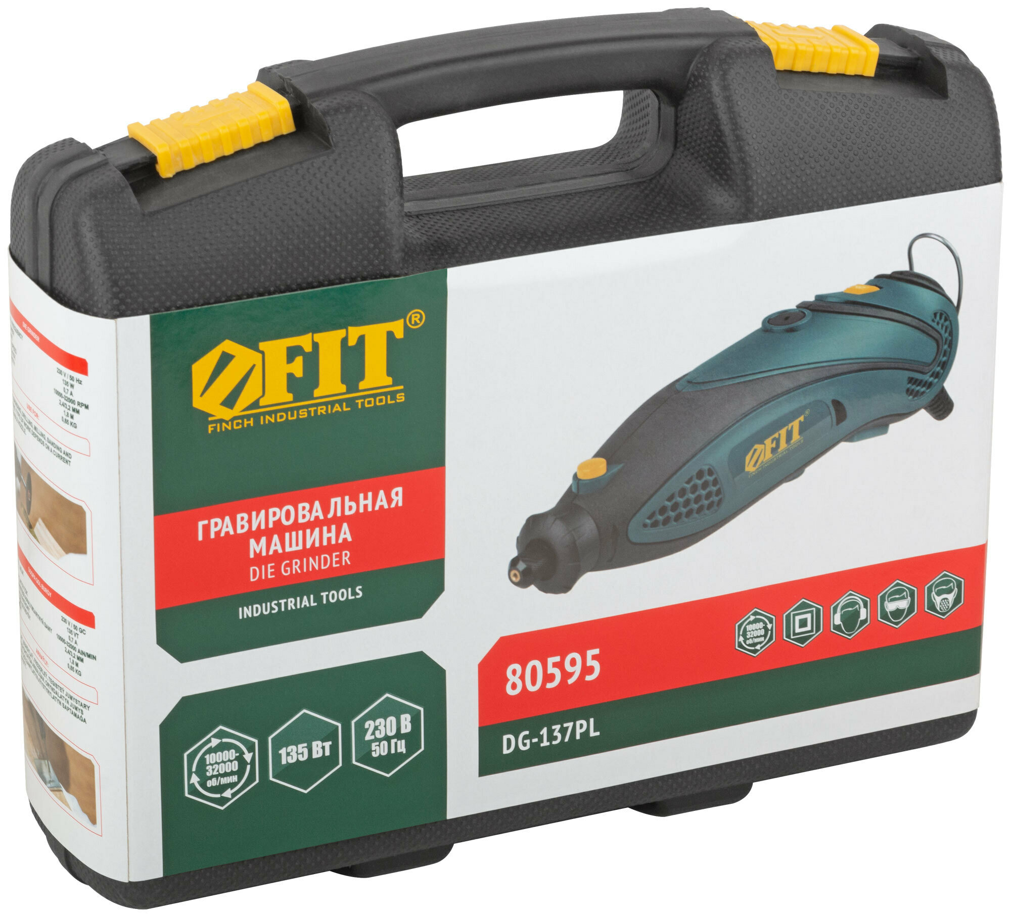 Гравировальная машина 130 Вт; 10000-35000 об/мин; 2,4/3,2 мм; БС щеток; набор насадок 210 шт.; кейс FIT 80598