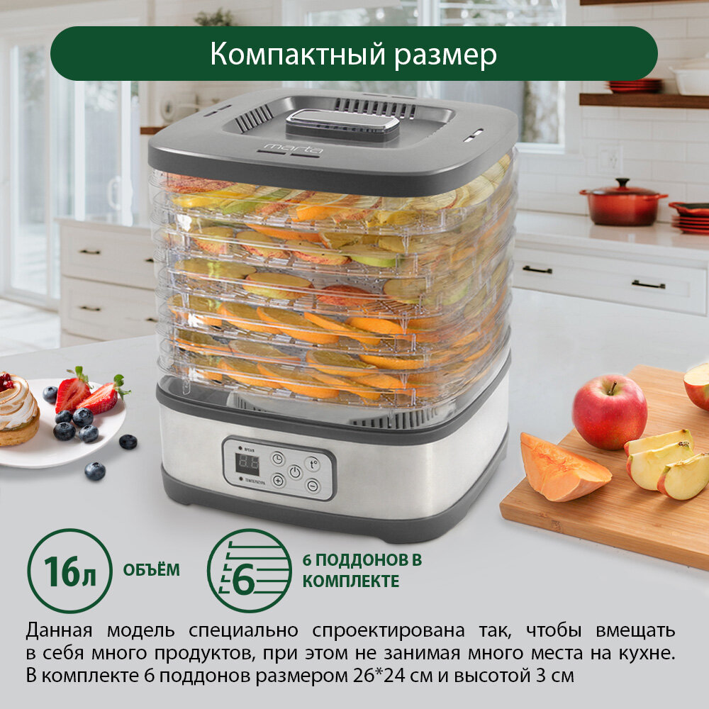 MARTA MT-1877 6 поддонов серый гранит сушилка д/фруктов,овощей