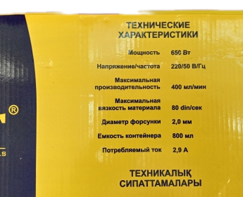 Распылитель электрический 650 Вт; 2,0 мм; 800 мл; 80 DIN/сек; 400 мл/мин; HVLP; коробка