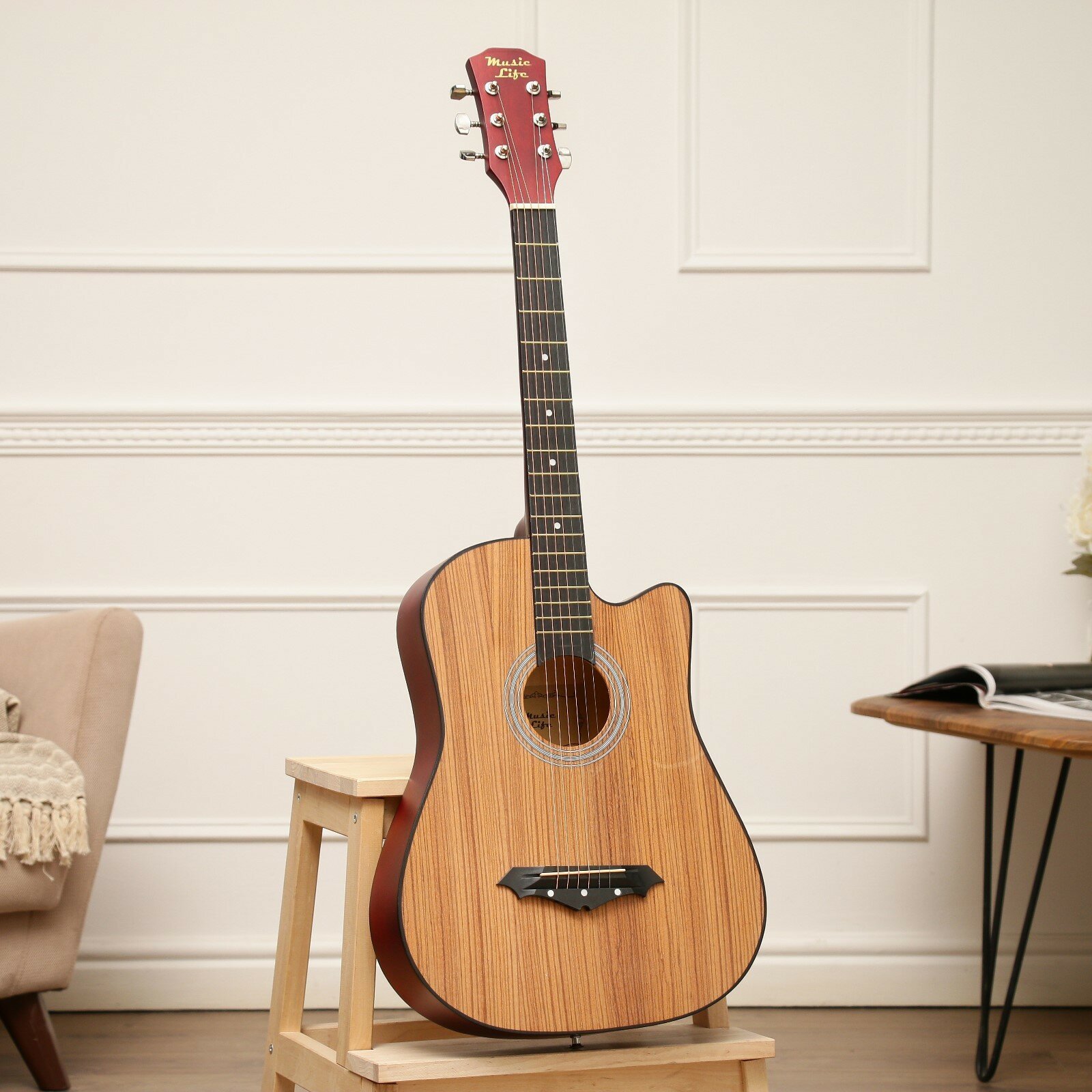 Music Life Гитара акустическая, цвет дерево, 97см, с вырезом