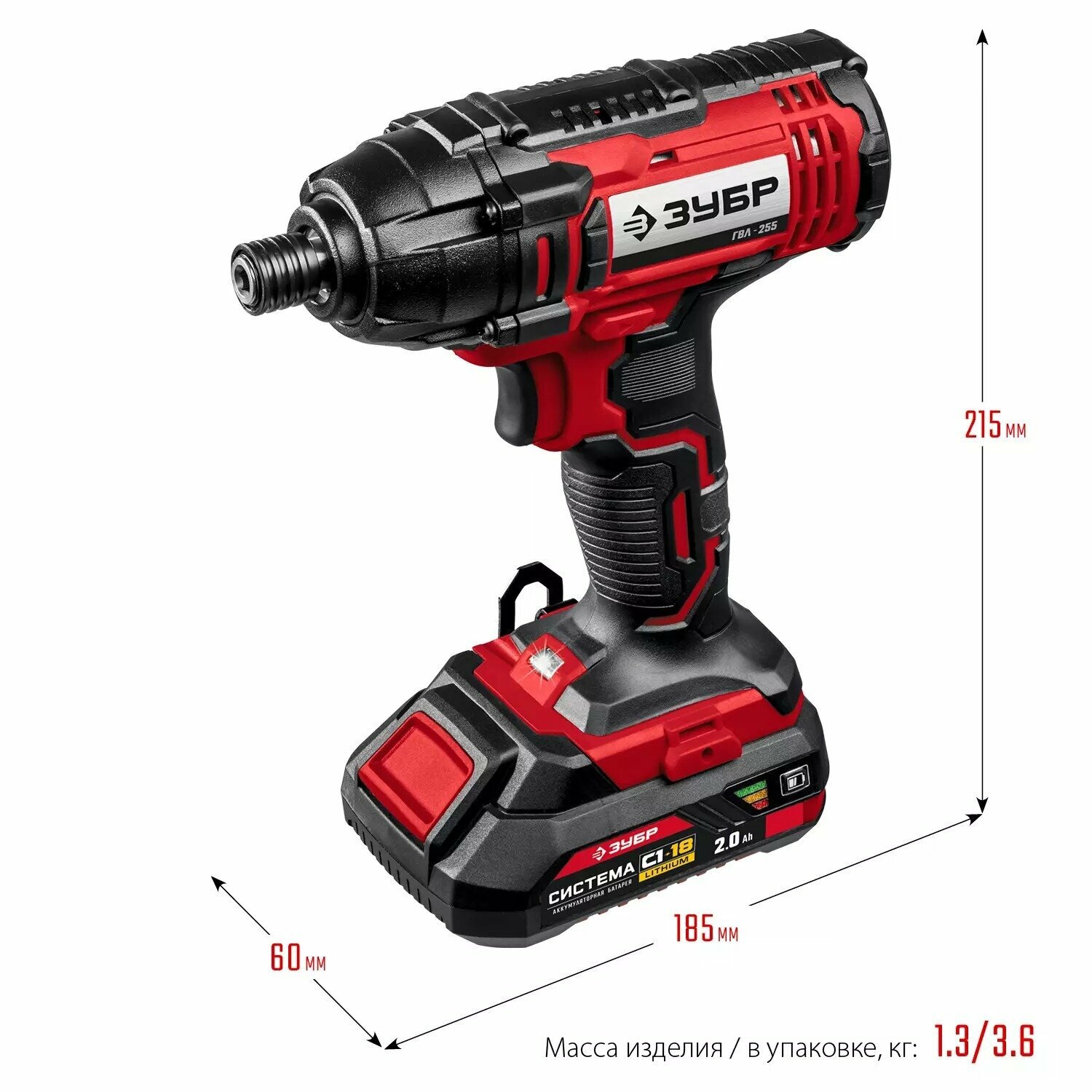 Винтоверт аккумуляторный ударный ЗУБР 18В, 2АКБ (2.0Ач) (ГВЛ-255-22)