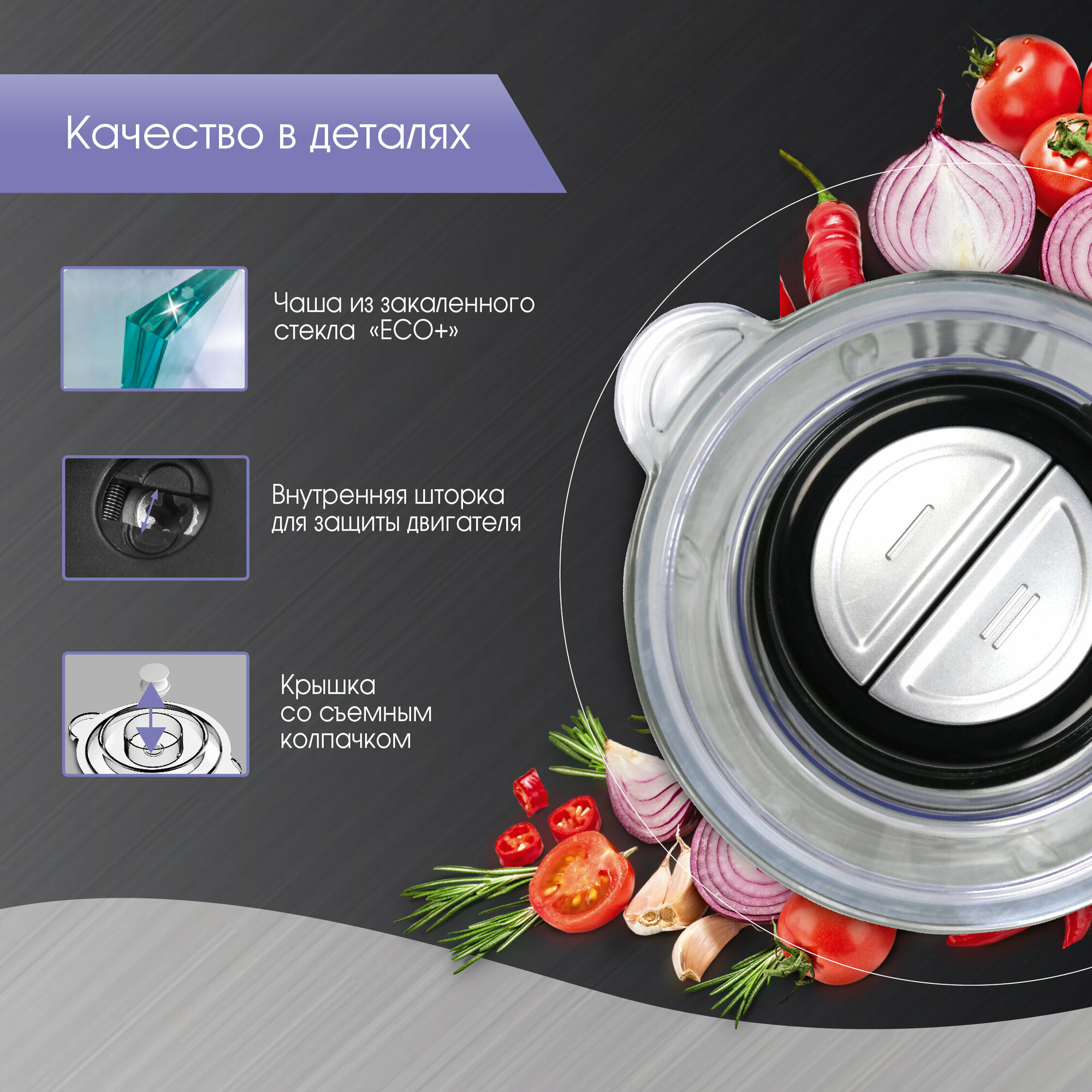 | Плюсы: | Быстро и отлично измельчает, чаша из нержавейки, 2 острых ножа, 2 скорости |