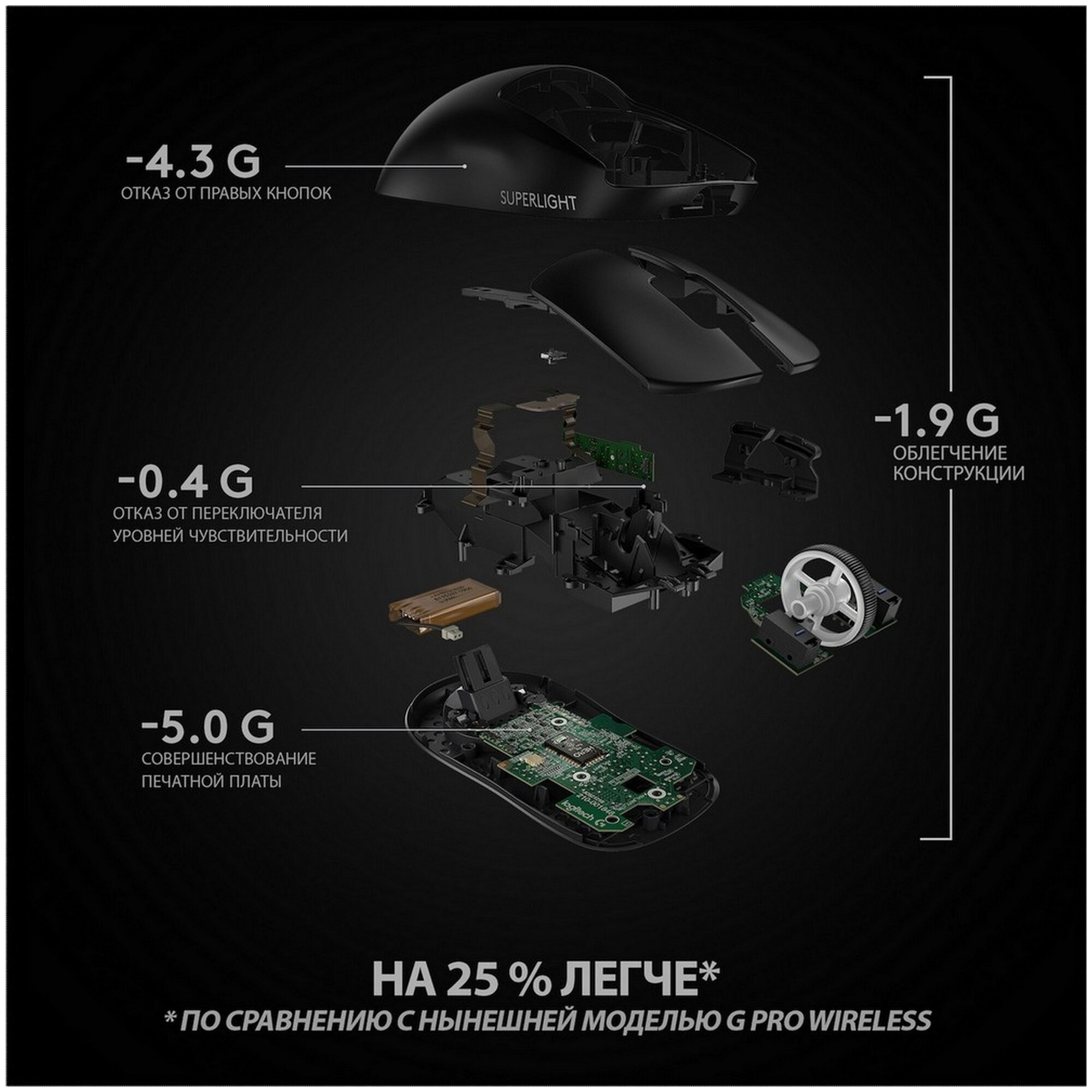 Игровая мышь Logitech PRO X SUPERLIGHT беспроводная чёрный