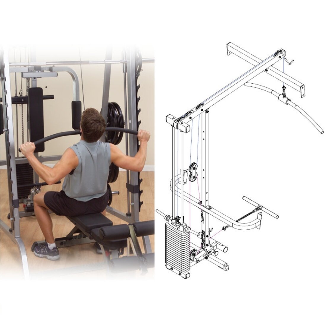 Купить Верхняя-нижняя тяга Body-Solid GLA348QS для машины Смита GS348Q
