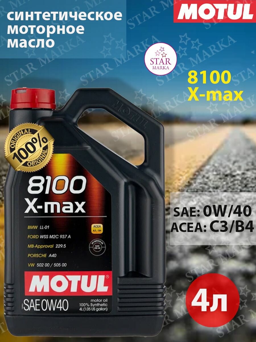 MOTUL 104532 MOTUL 0W40 (4L) 8100 X-MAX масло моторное\ACEA A3/B4 API SN MB 229.5 PORSCHE A40 VW 502 00/505 00