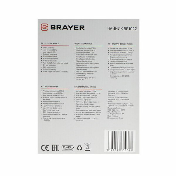 СохранитьЭлектрочайник BRAYER BR1022 [нержавеющая сталь, 1.7 л, 2200 Вт, фильтр, скрытый нагревательный элеме интересное: