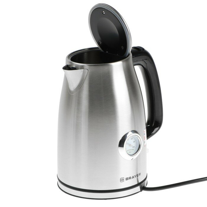 BRAYER Чайник электрический BRAYER BR1022, металл, 1.7 л, 2150 Вт, термометр, серебристый