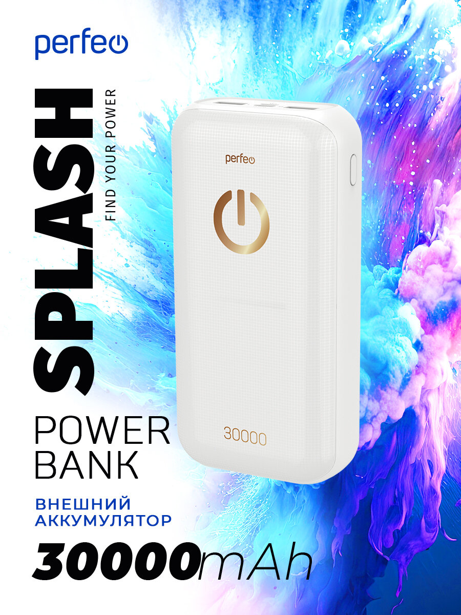 Портативный аккумулятор Perfeo Splash 30000, белый, упаковка: коробка