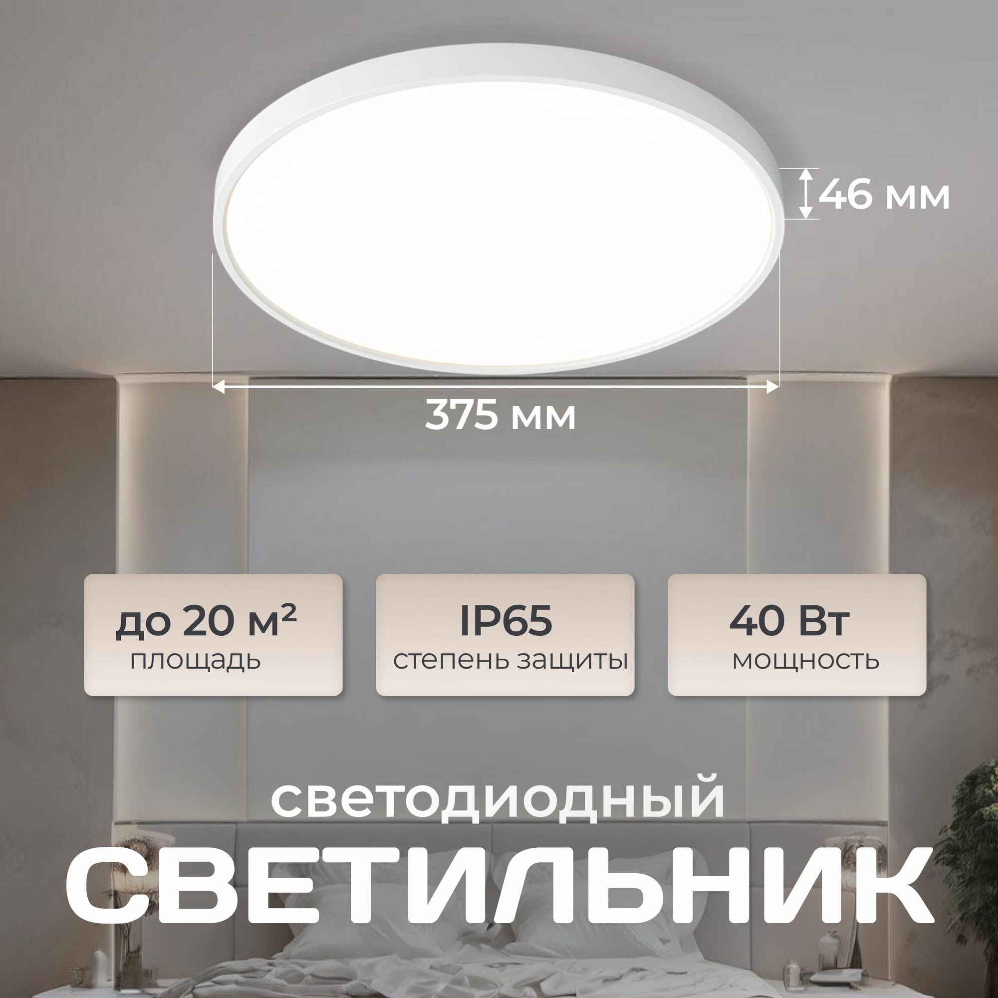 Влагозащитный светильник светодиодный накладной LE LED BL IP65 18Вт 5000K, потолочный светильник для ванной комнаты