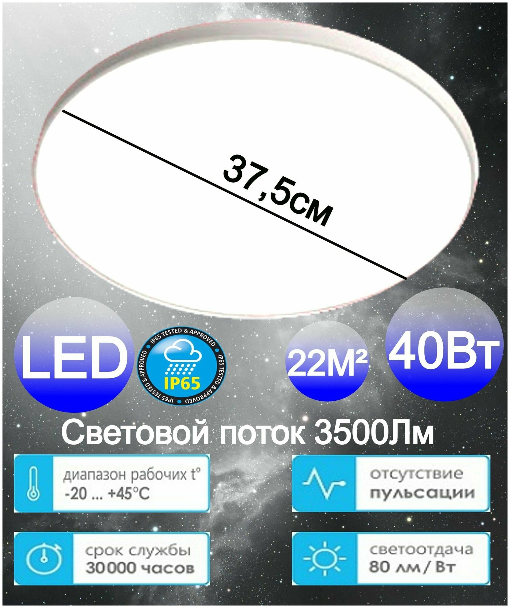 СохранитьLEEK св-к св/д декоративный влагозащ 40W(3500lm) 5000K 5K круг 375x46 ЖКХ BL IP65 интересное: