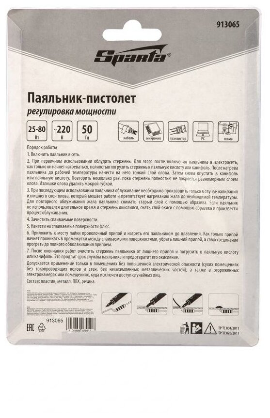 SPARTA 913065 Паяльник-пистолет с регулировкой мощности 25-80 Вт, 220 В Sparta 913065 SPARTA 913065