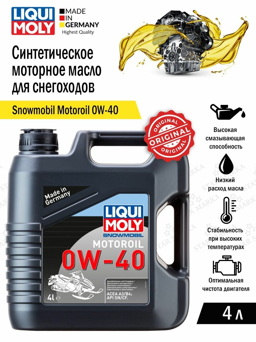 Моторное масло Liqui Moly для снегоходов Snowmobil Motoroil 0W-40 Cf/sm A3/b4, синтетическое, 4л 226 .