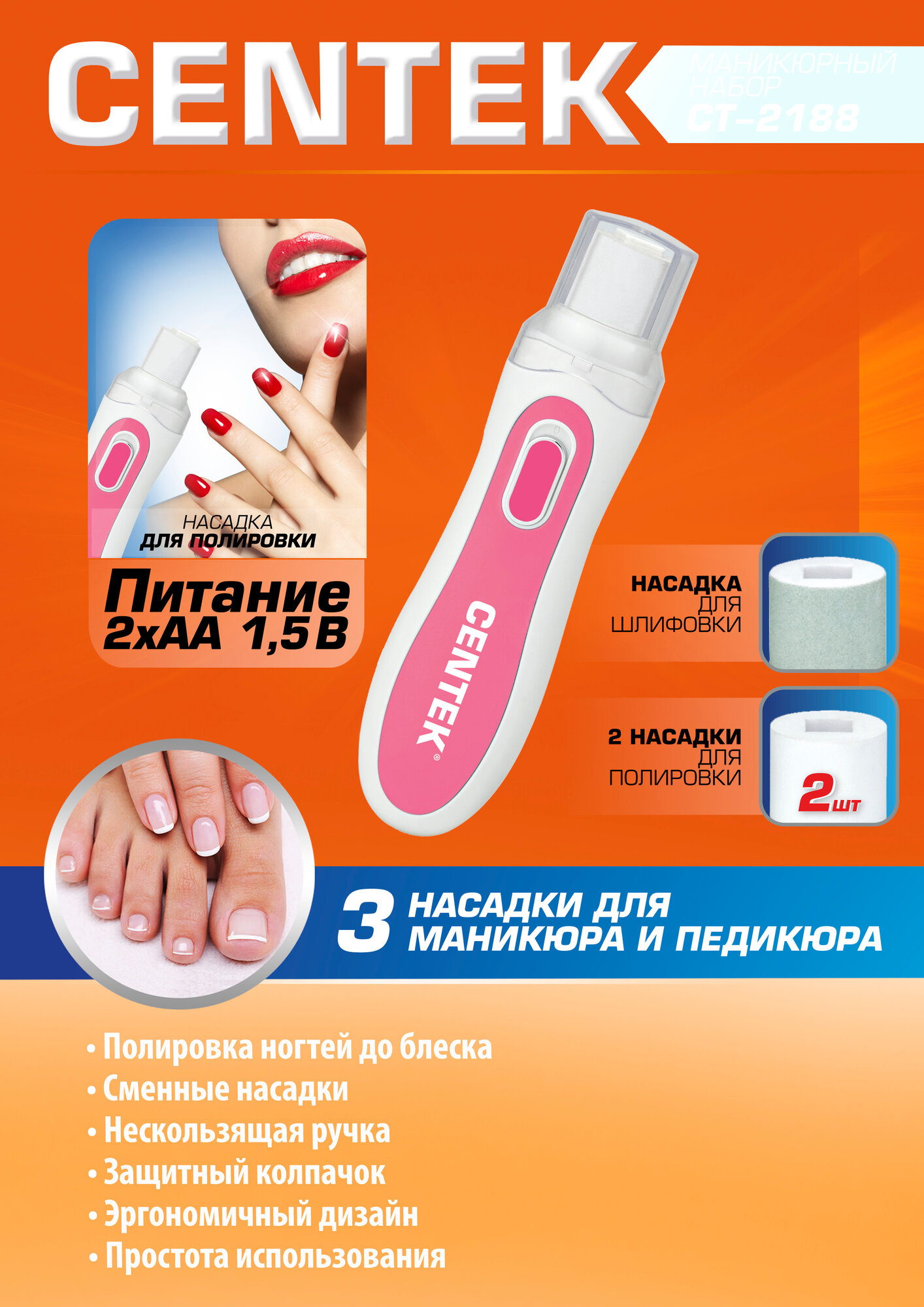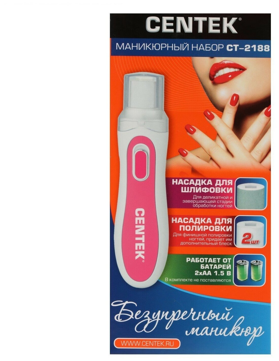 Набор для маникюра Centek CT-2188 бел/розовый 3 насадки: ВСЁ для полировки ногтей