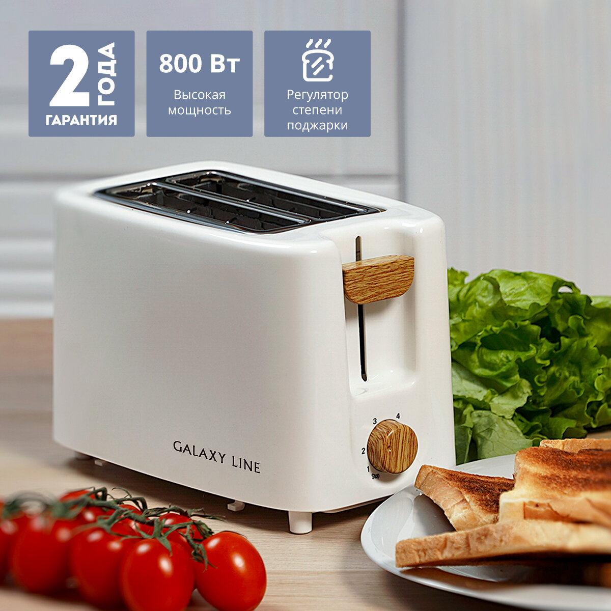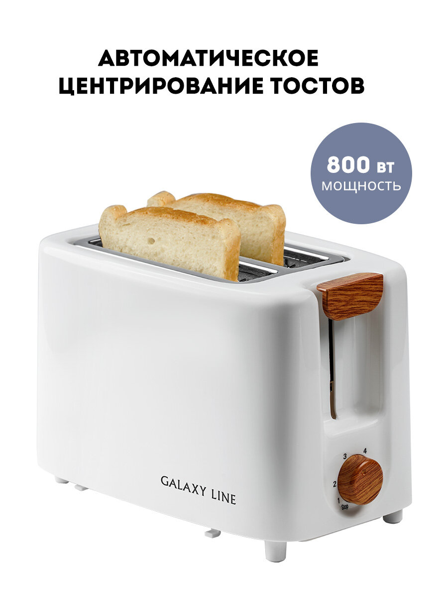 Тостер Galaxy GL 2909 (800Вт, белый, автоматическое центрирование тостов)