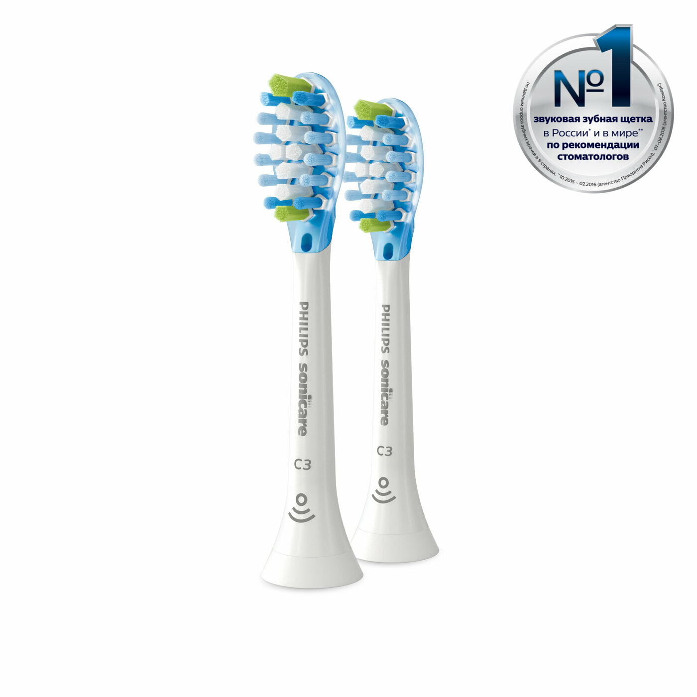 Набор насадок Philips Sonicare C3 Premium Plaque Defence HX9042/17 для звуковой щетки, белый, 2 шт.