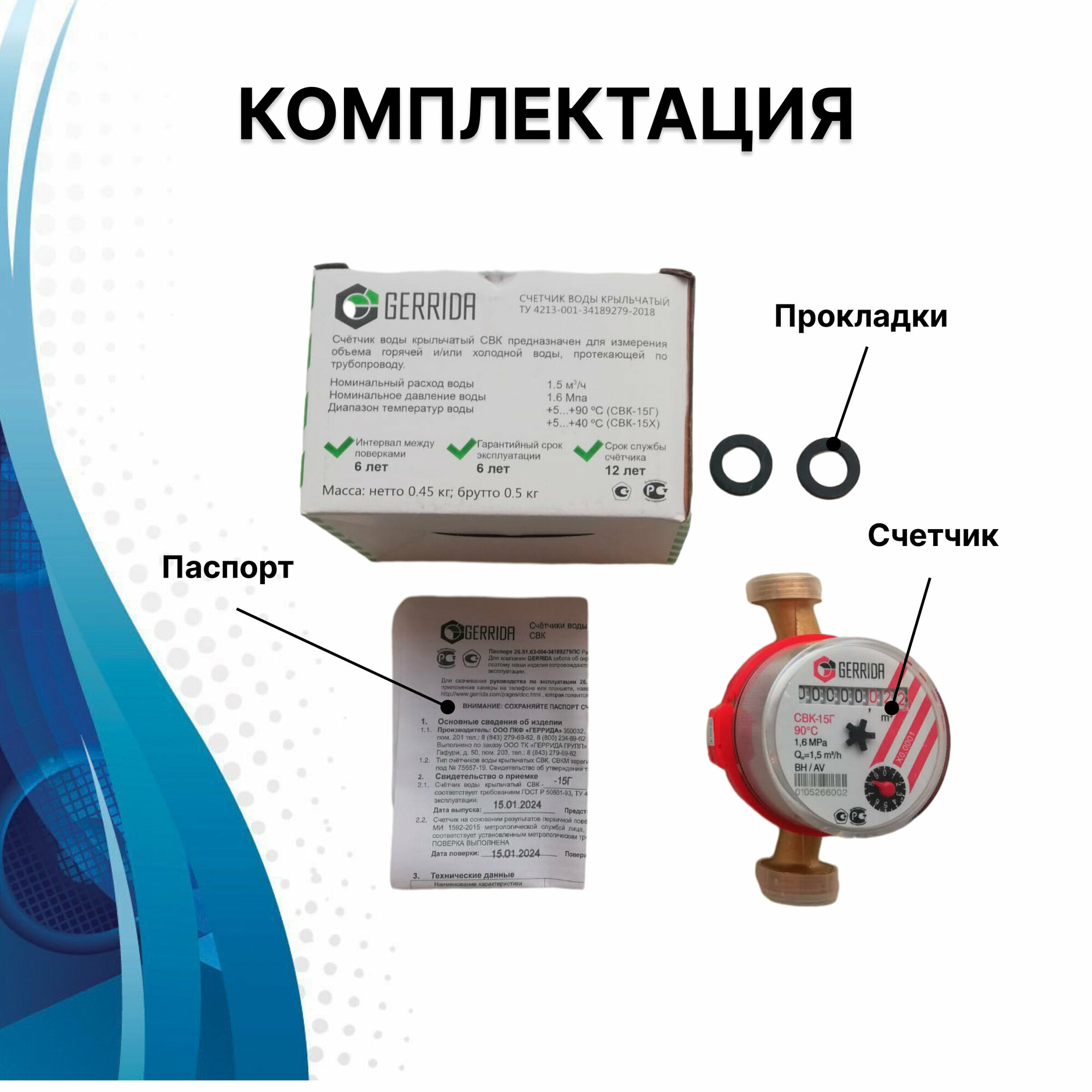 Счетчик для горячей и холодной воды с прокладкой Gerrida СВК-15Г без комплекта монтажных частей / универсальный интересное: