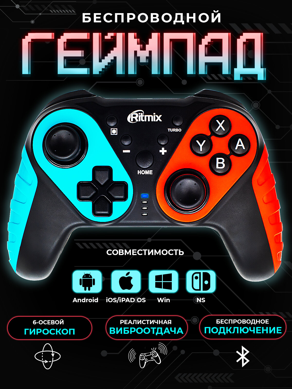 Геймпад RITMIX GP-036BTH, BTH,универсал.геймпад,подд.ОС Android,NS,ПК и ноут.в Win(каб соед),аккум 350 мАч