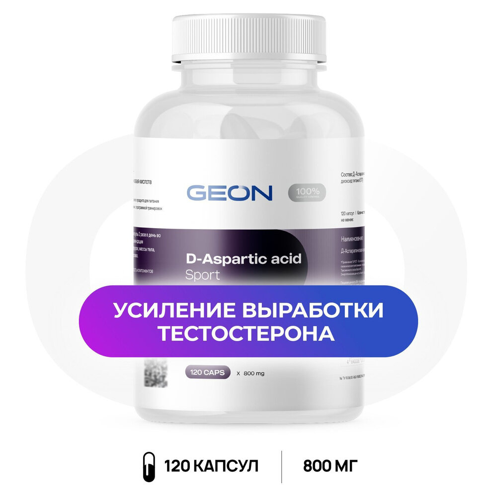 Д-аспарагиновая кислота GEON D-Aspartic acid sport, 120 капсул интересное: