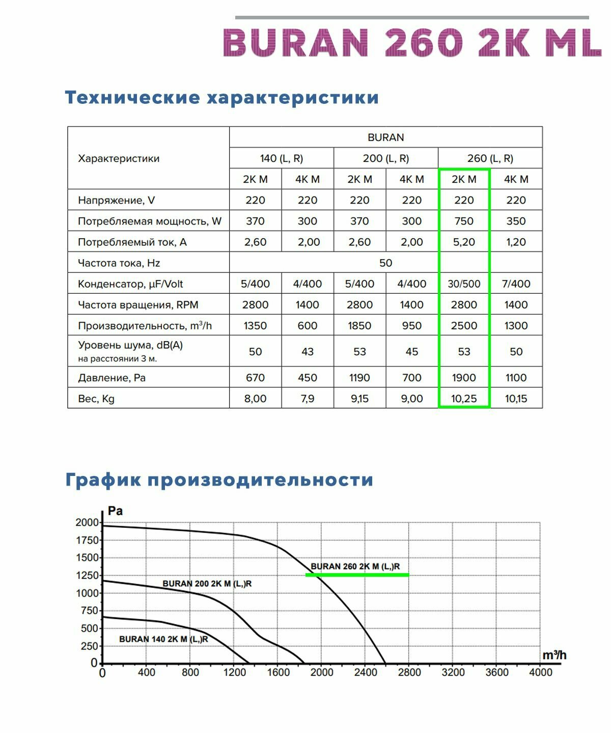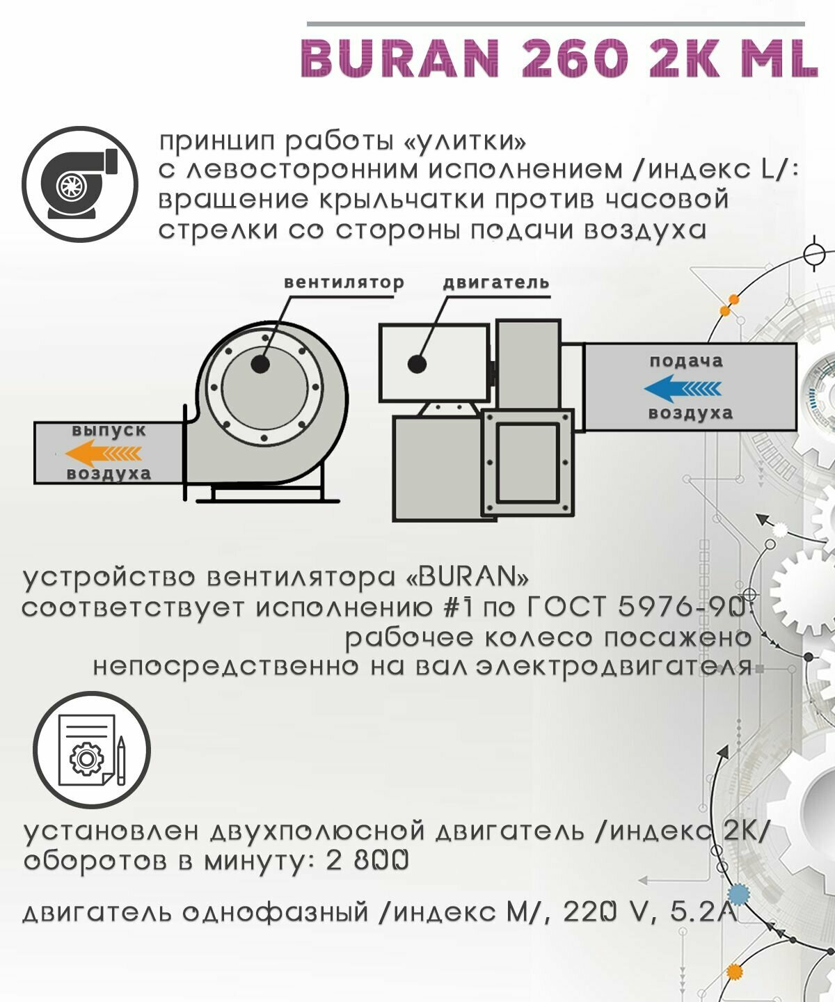 Вентилятор радиальный, BURAN 260, левосторонний, двухполюсный двигатель интересное:
