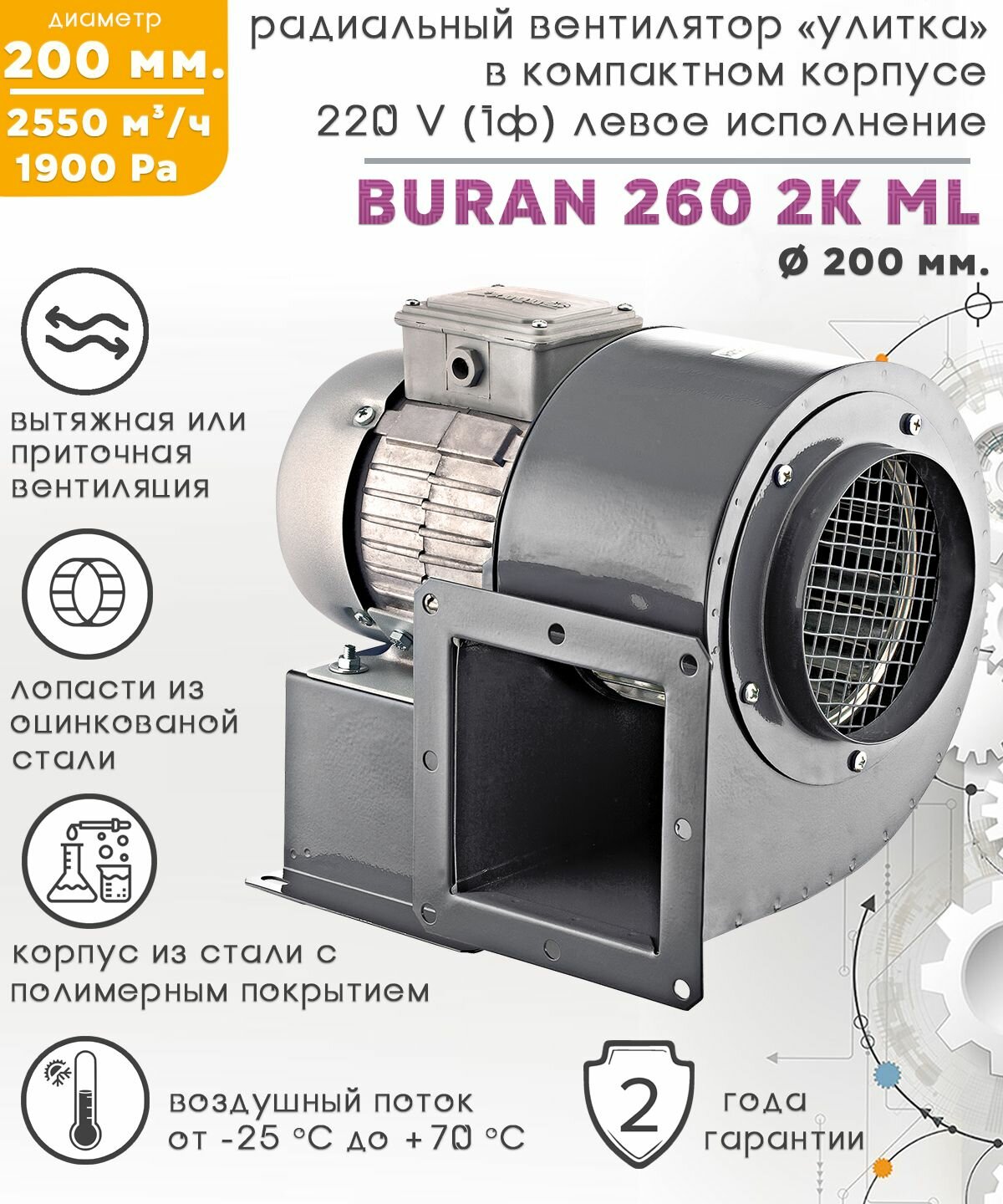 Купить Вентилятор радиальный, BURAN 260, левосторонний, двухполюсный двигатель