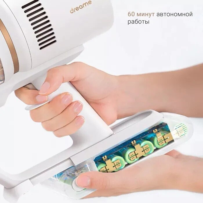 Удобство при уборке, так как нет проводов Удобный контейнер для выброса мусора Электрические насадки Легкосъемный аккумулятор |