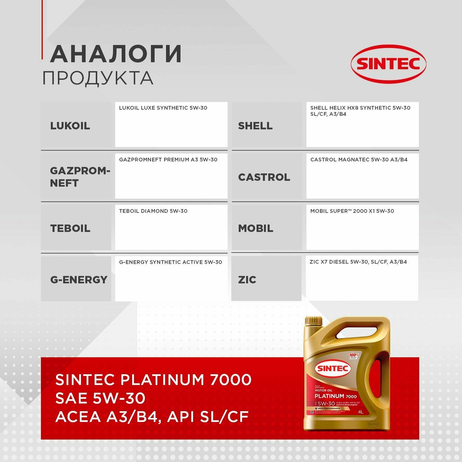 масло sintec 5w30 platinum 7000 api sl/cf acea a3/b4 4л син