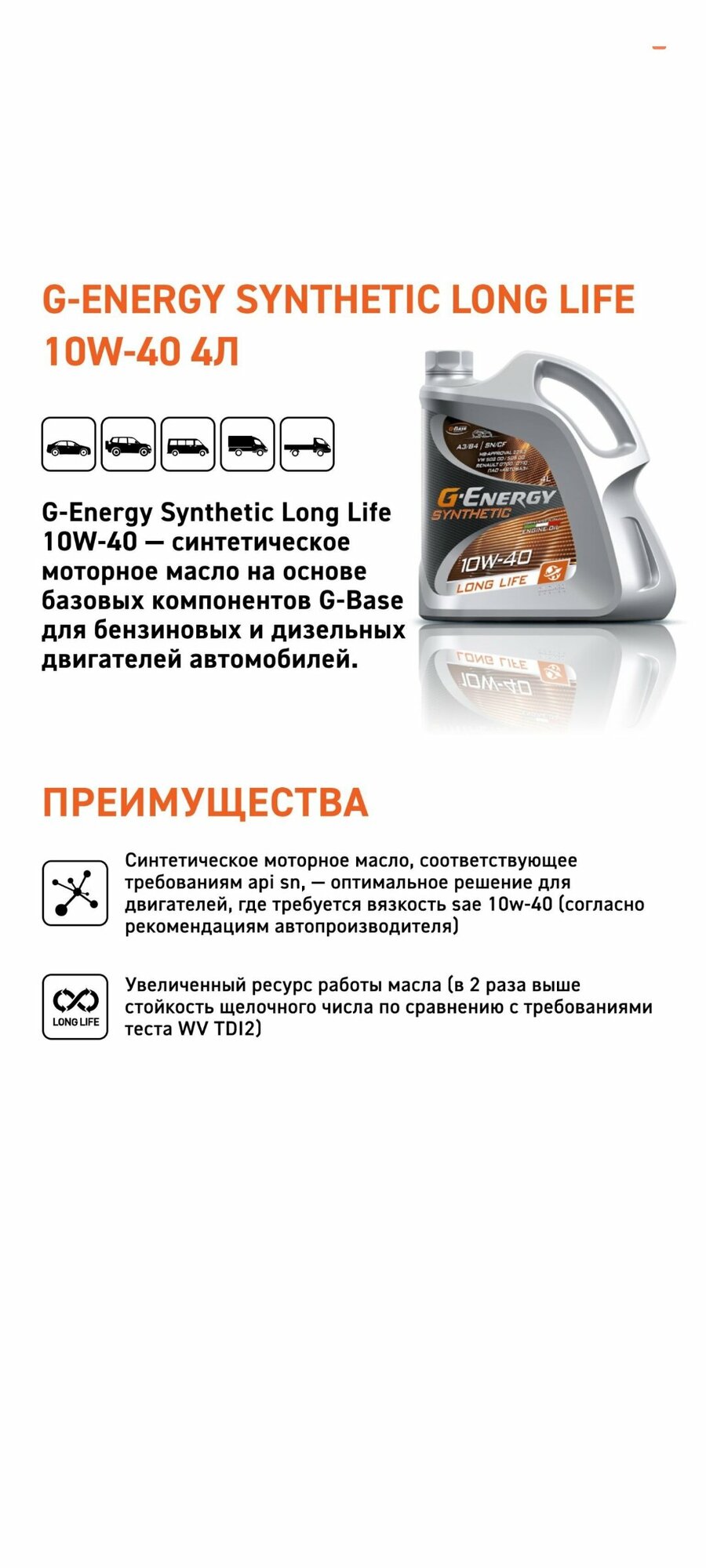 G-Energy Масло Моторное G-Energy Synthetic Long Life 10w40 Синтетическое 4 Л 253142395