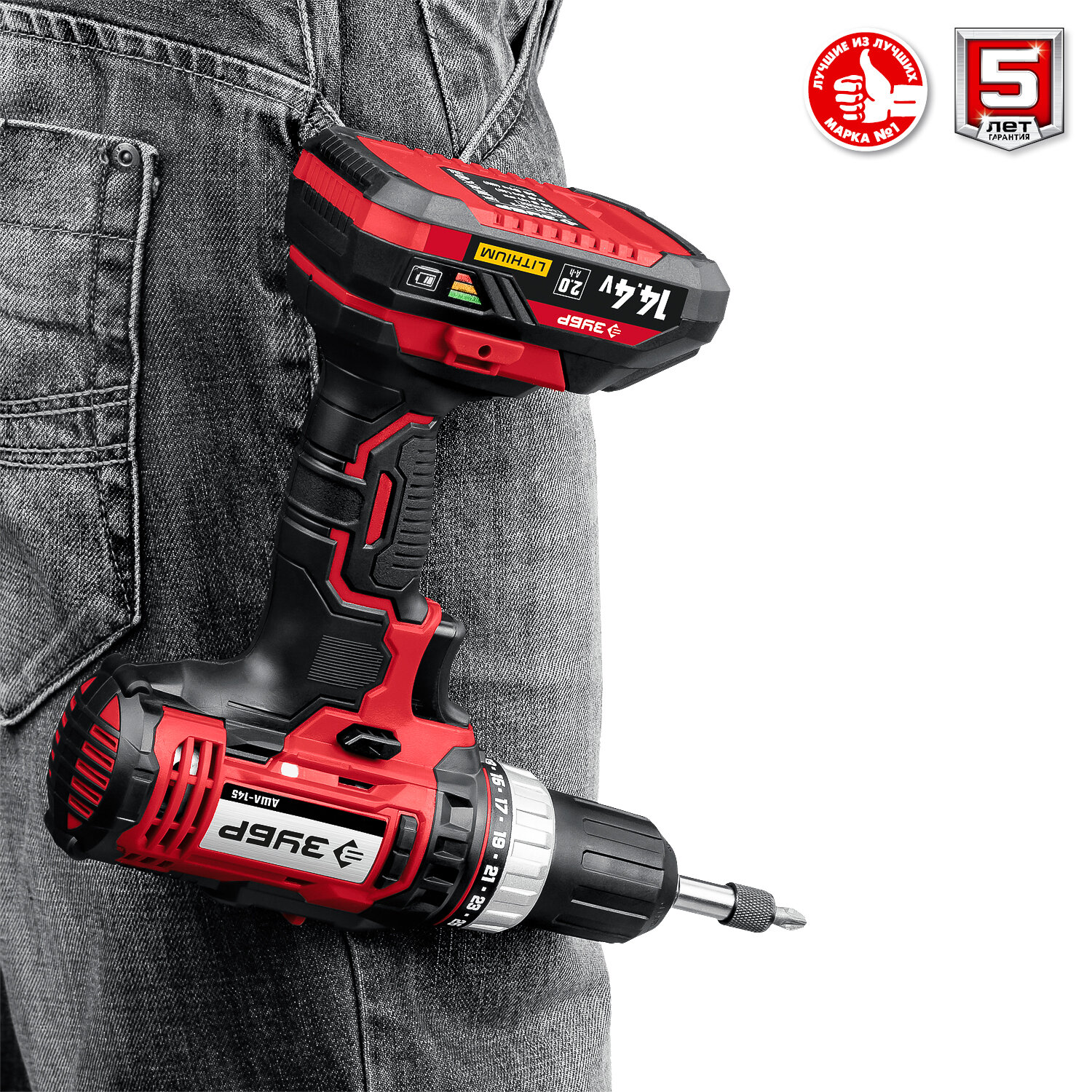 Дрель-шуруповерт аккумуляторная Зубр ДШЛ-145-22 14,4В 2х2Ач Li-lon 2 АКБ и ЗУ