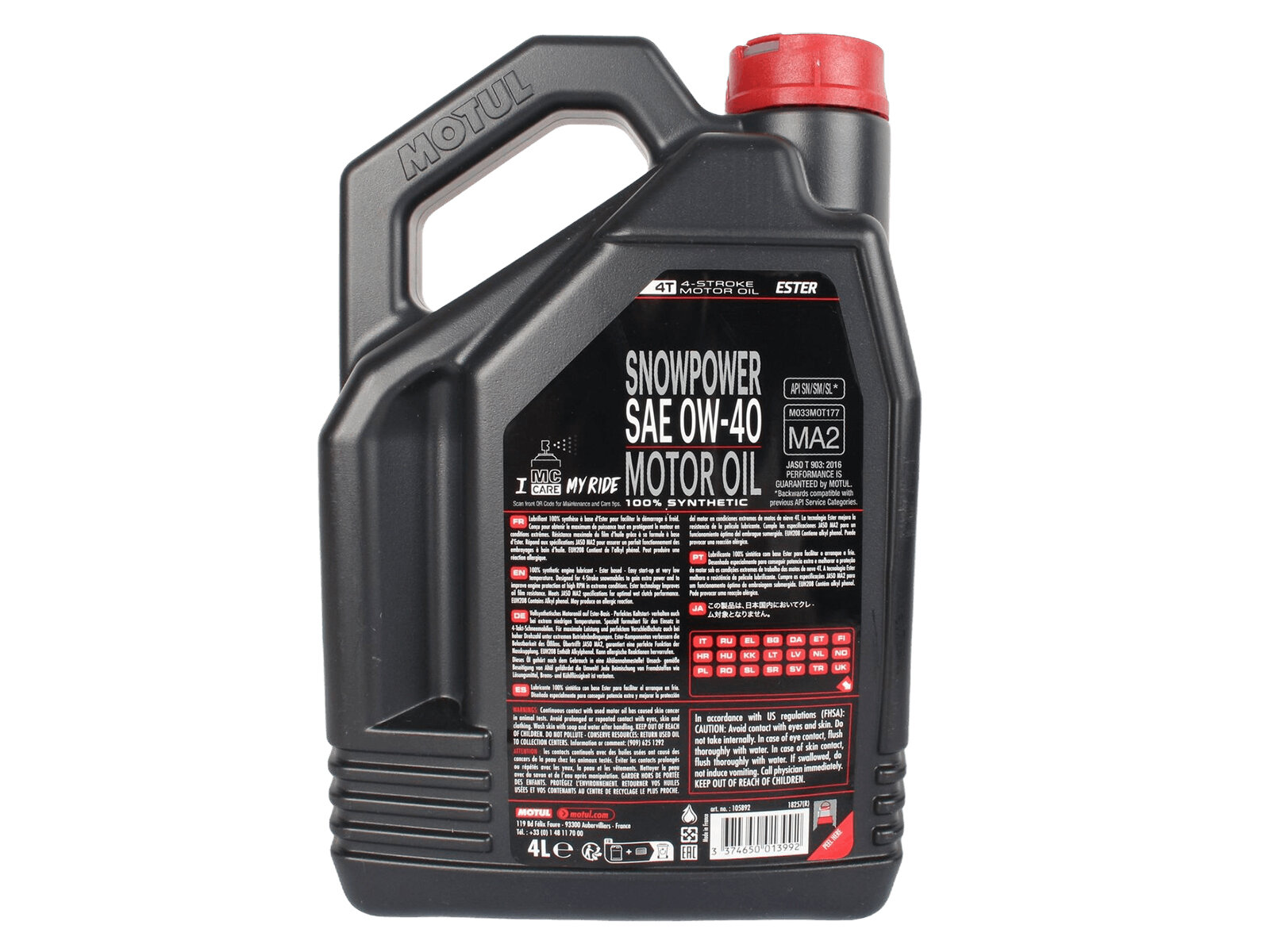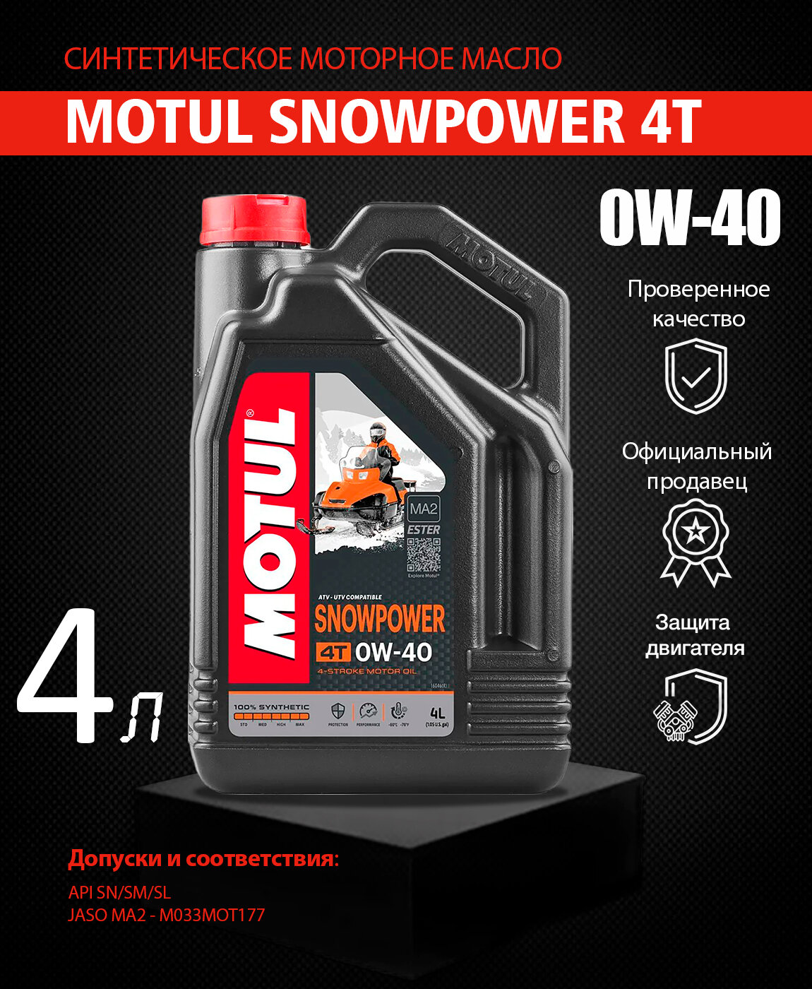 Моторное масло MOTUL Snowpower 4T 0W-40 для снегоходов, 4 л (замена для 101231)
