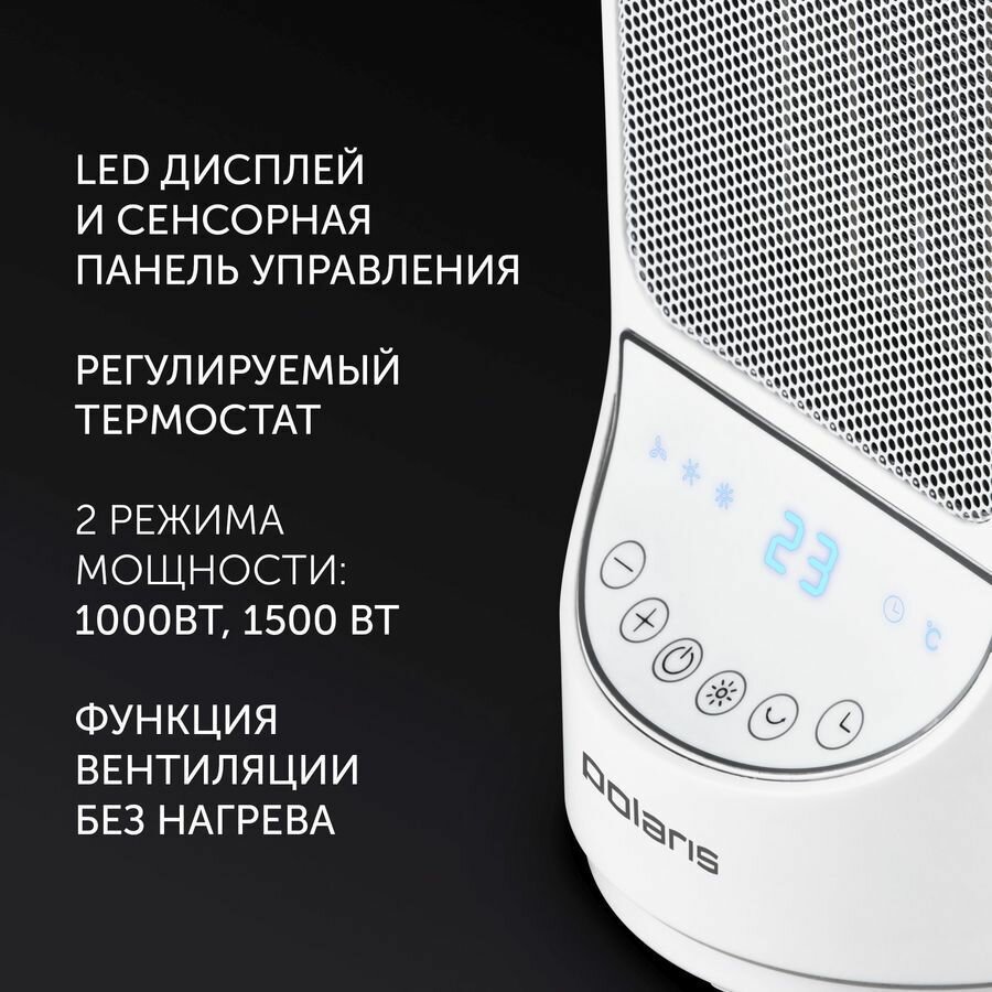 Тепловентилятор настольный Polaris PCDH 2215D, 1500 Вт, белый