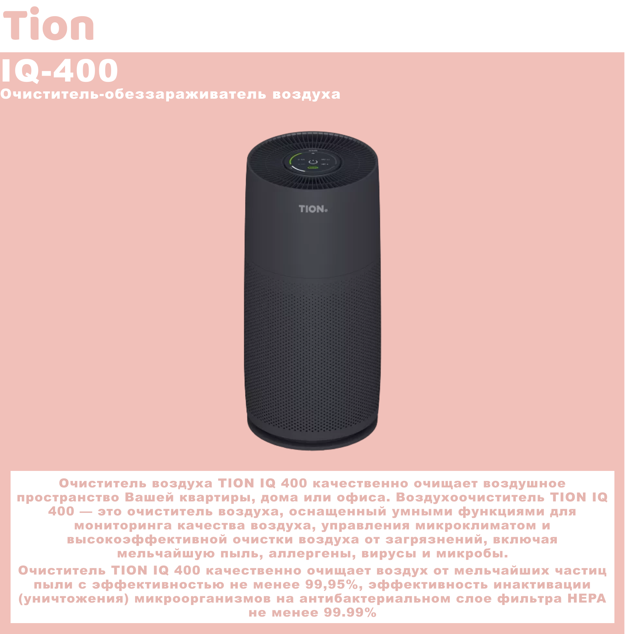 Ниже Вы можете прочитать отзывы на Очиститель воздуха TION IQ 400, чeрный, ознакомится с подробными характеристиками, посмотреть интересные обзоры и фотографии на Очиститель воздуха TION IQ 400, чeрный.