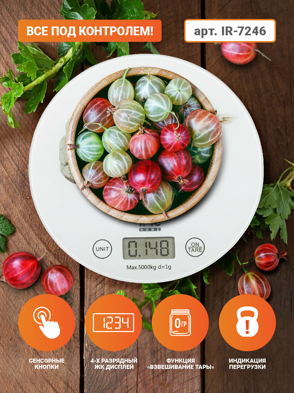 Весы кухонные электронные настольные IR-7246 для еды 5 кг интересное: