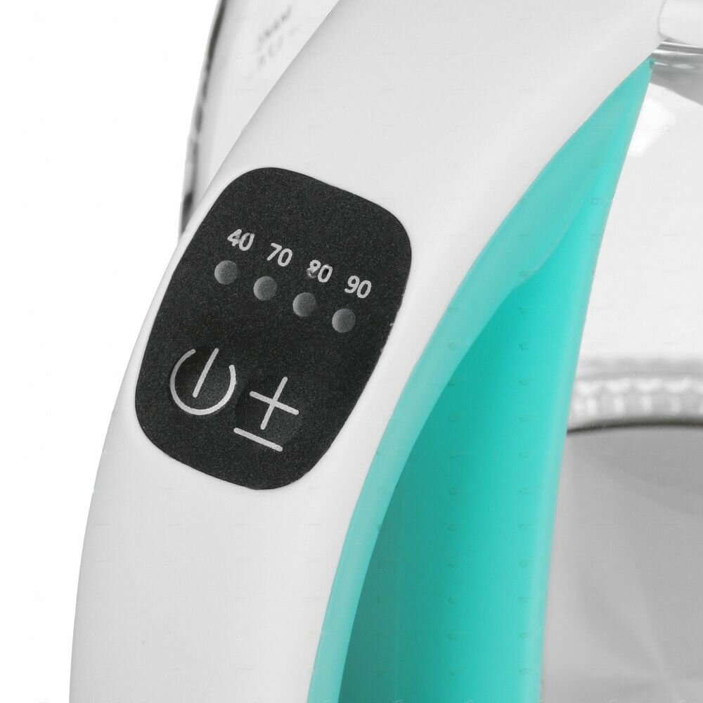 Чайник KITFORT КТ-6140-3, 1,7 л, 2200 Вт, закрытый нагревательный элемент, терморегулятор, стекло, белый/бирюзовый