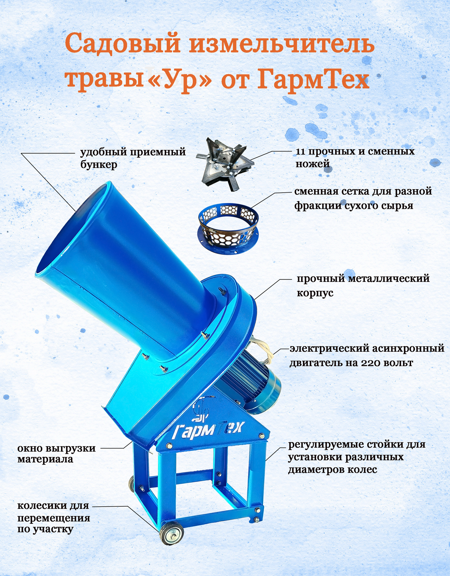 Электрический садовый измельчитель травы "Ур" 3 кВт 220 В интересное: